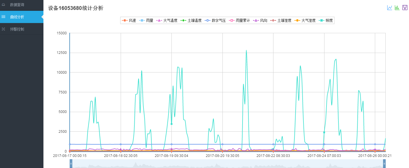 4.數(shù)據(jù)實(shí)時(shí)曲線圖,趨勢(shì)圖查詢服務(wù)可方便您觀察一段時(shí)間內(nèi)檢測(cè)值變化較大的檢測(cè)點(diǎn)。